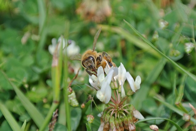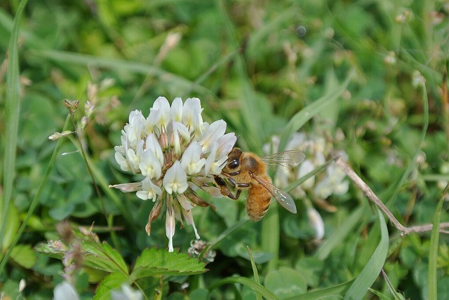 江津湖ではよく見かける一般的なミツバチの仲間。