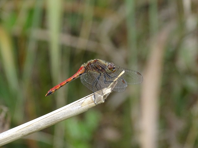 江津湖では8月~10月にかけて見かける、俗にいう赤トンボ。