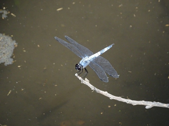粉を吹いたように見えることが名前の由来。シオカラトンボによく似ているが、シオカラトンボよりも少し小さい。