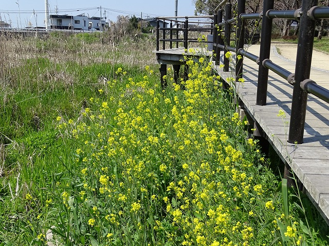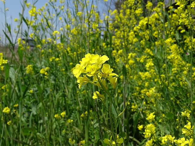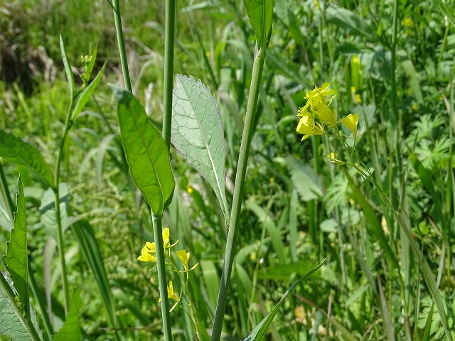 セイヨウアブラナに似るが、葉が茎から直接つくことで見分ける。