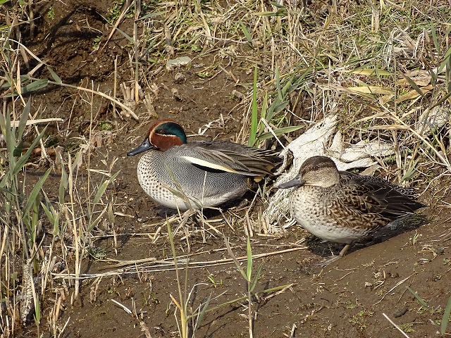 他のカモより一回り小さい。江津湖上流部などでよく見かける。